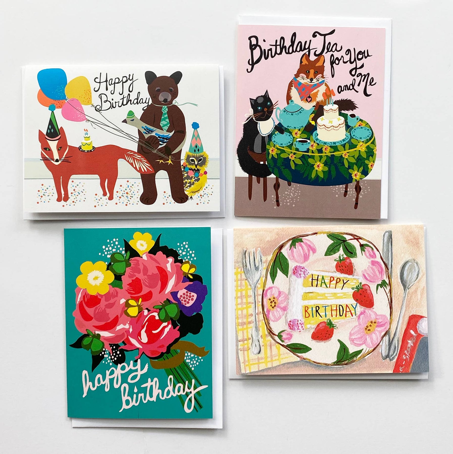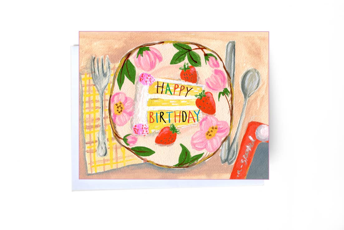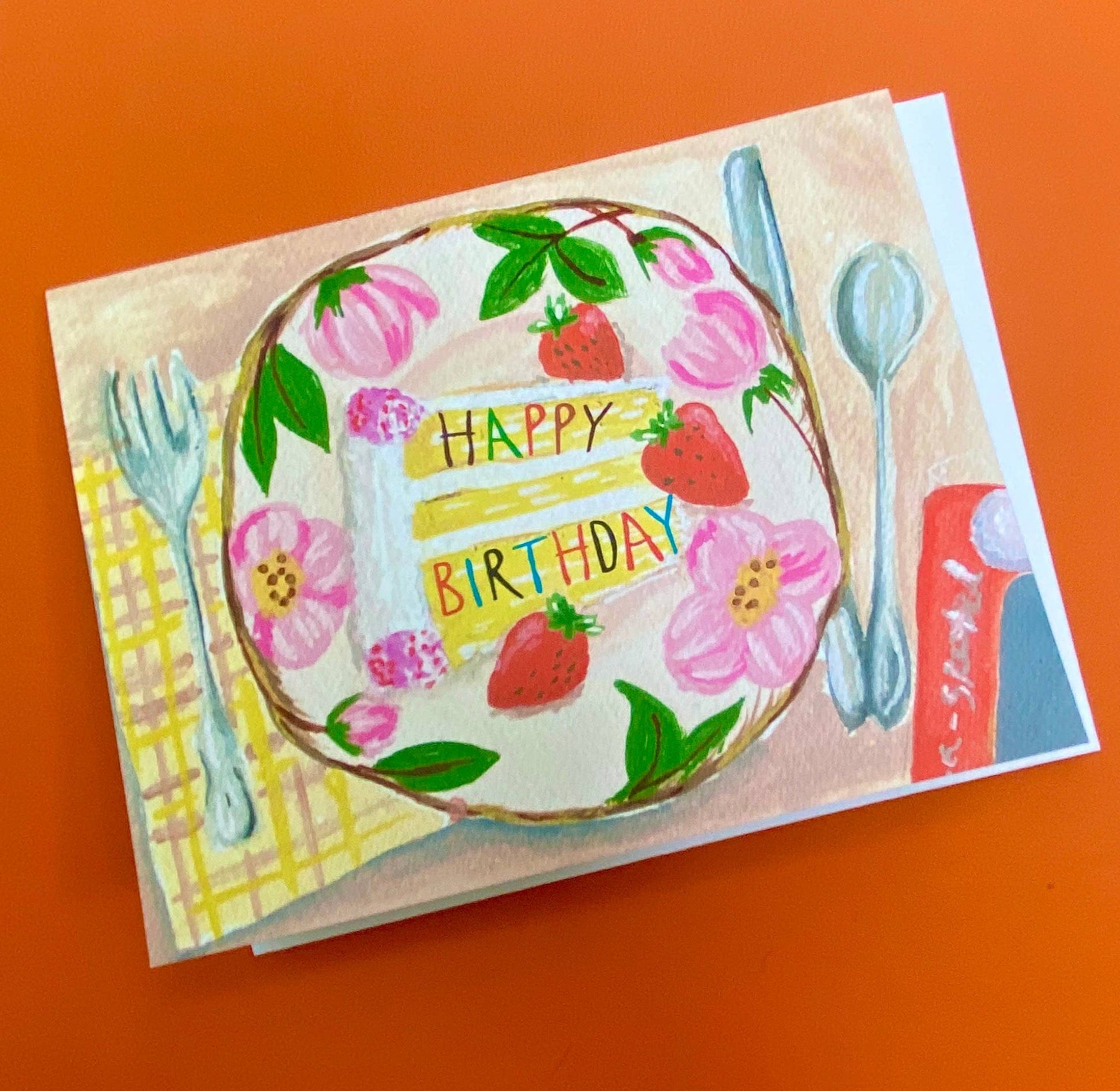 Make a special friend extra happy with this sweet Piece of cake! Blank on the inside. Comes with a crisp white envelope. Measures 4.25" x 5.5" FSC Certified + Recycled content. Individual notes are packaged in a clear, plant based, certified compostible sleeve.