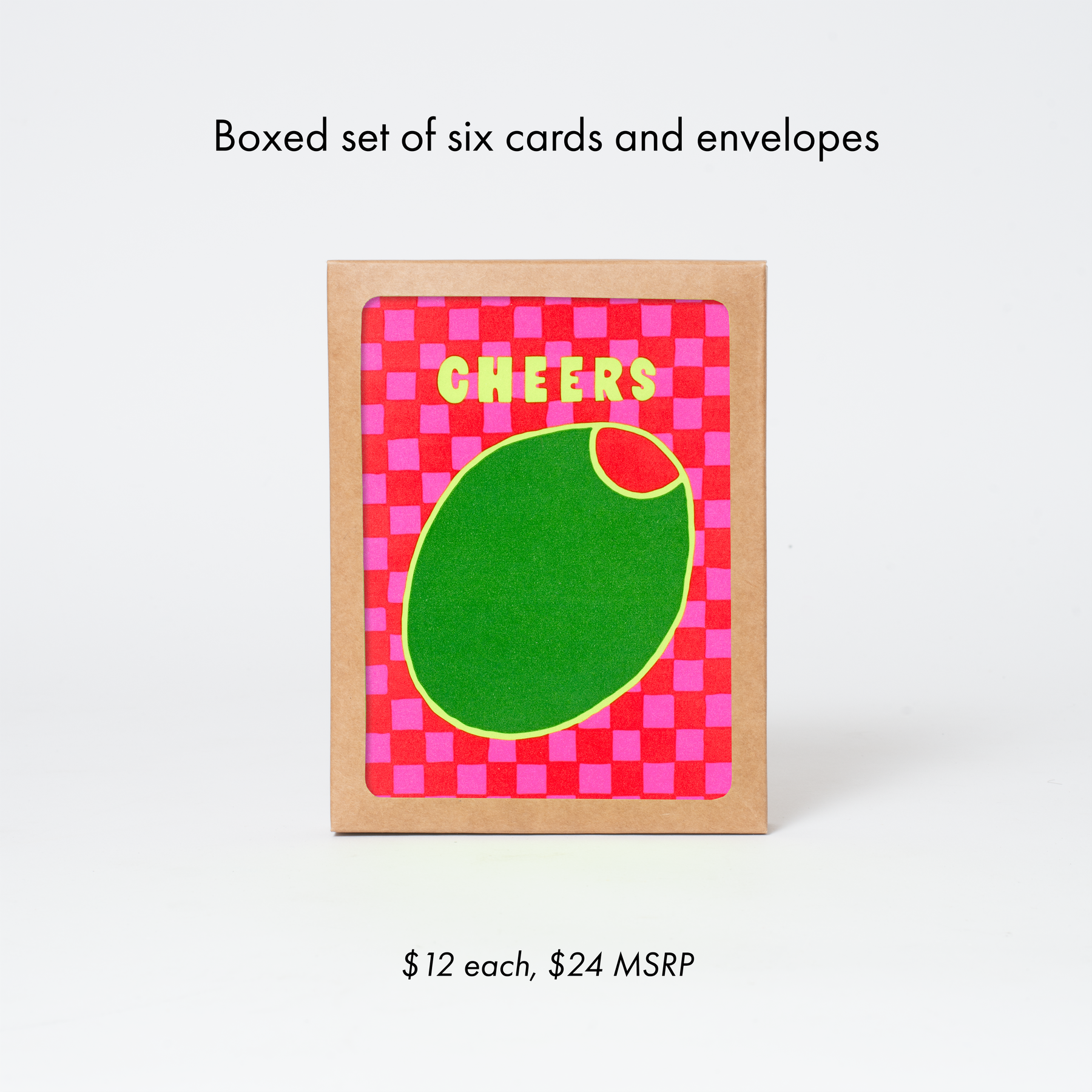 Cheers Olive Holiday Letterpress Card by Suzy Ultman: Plastic sleeve