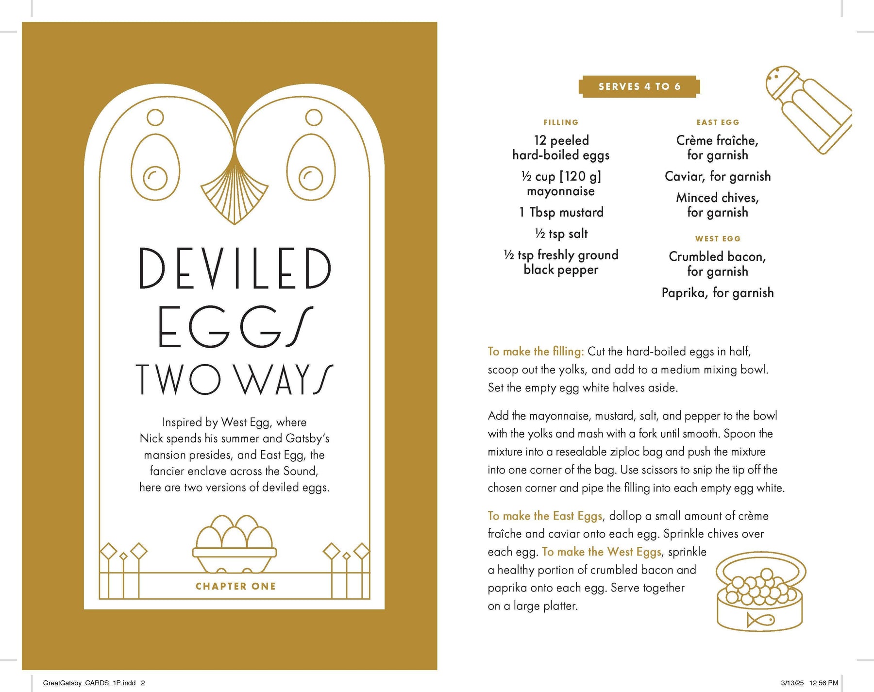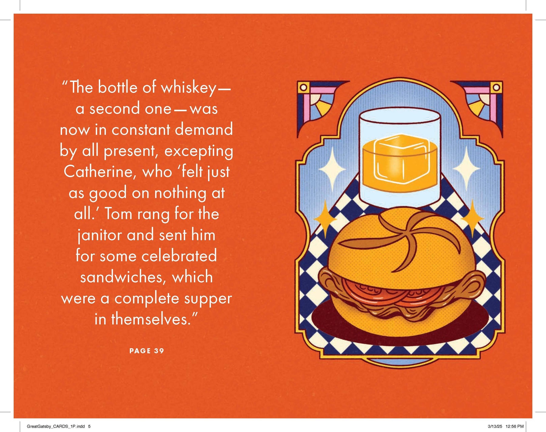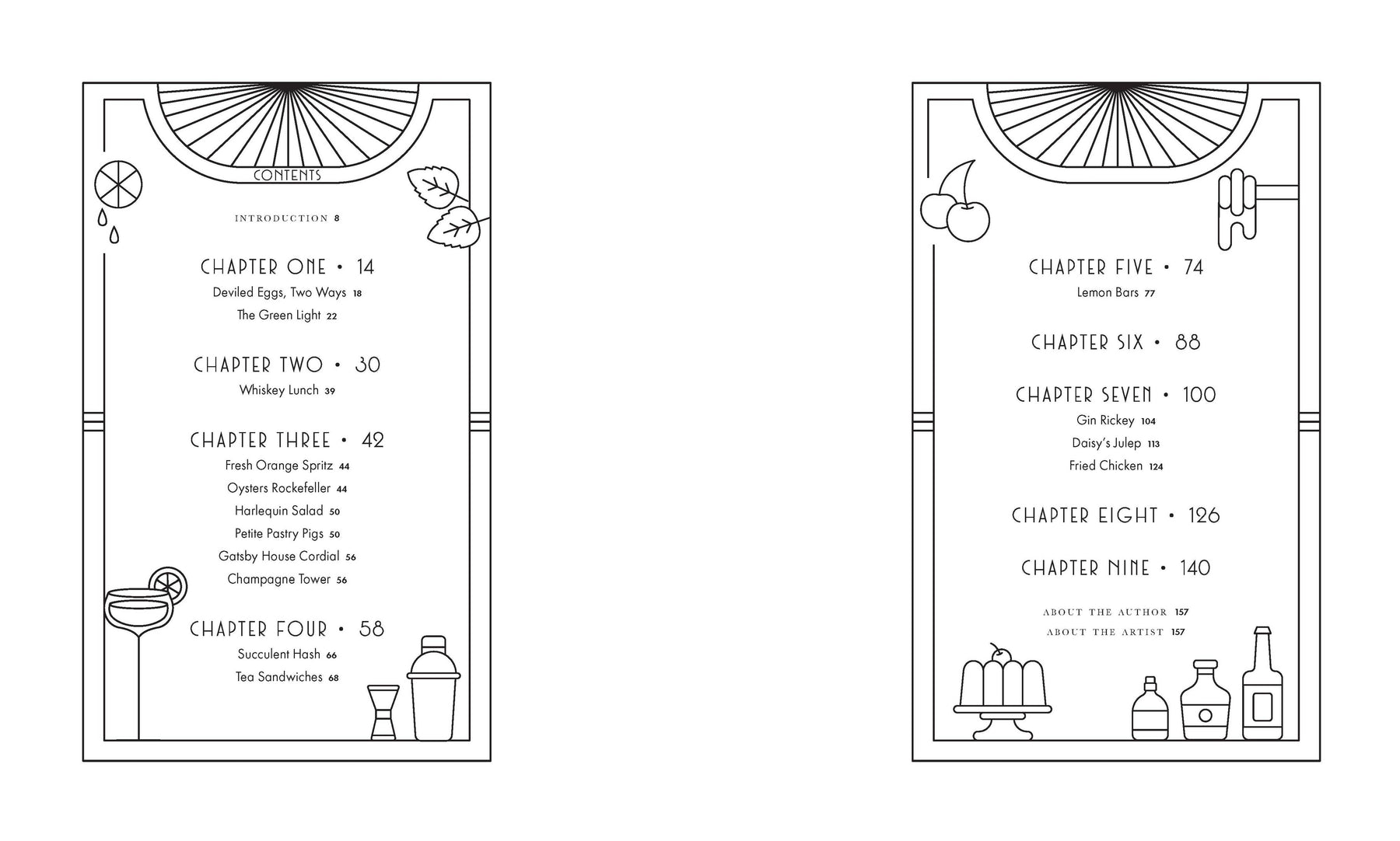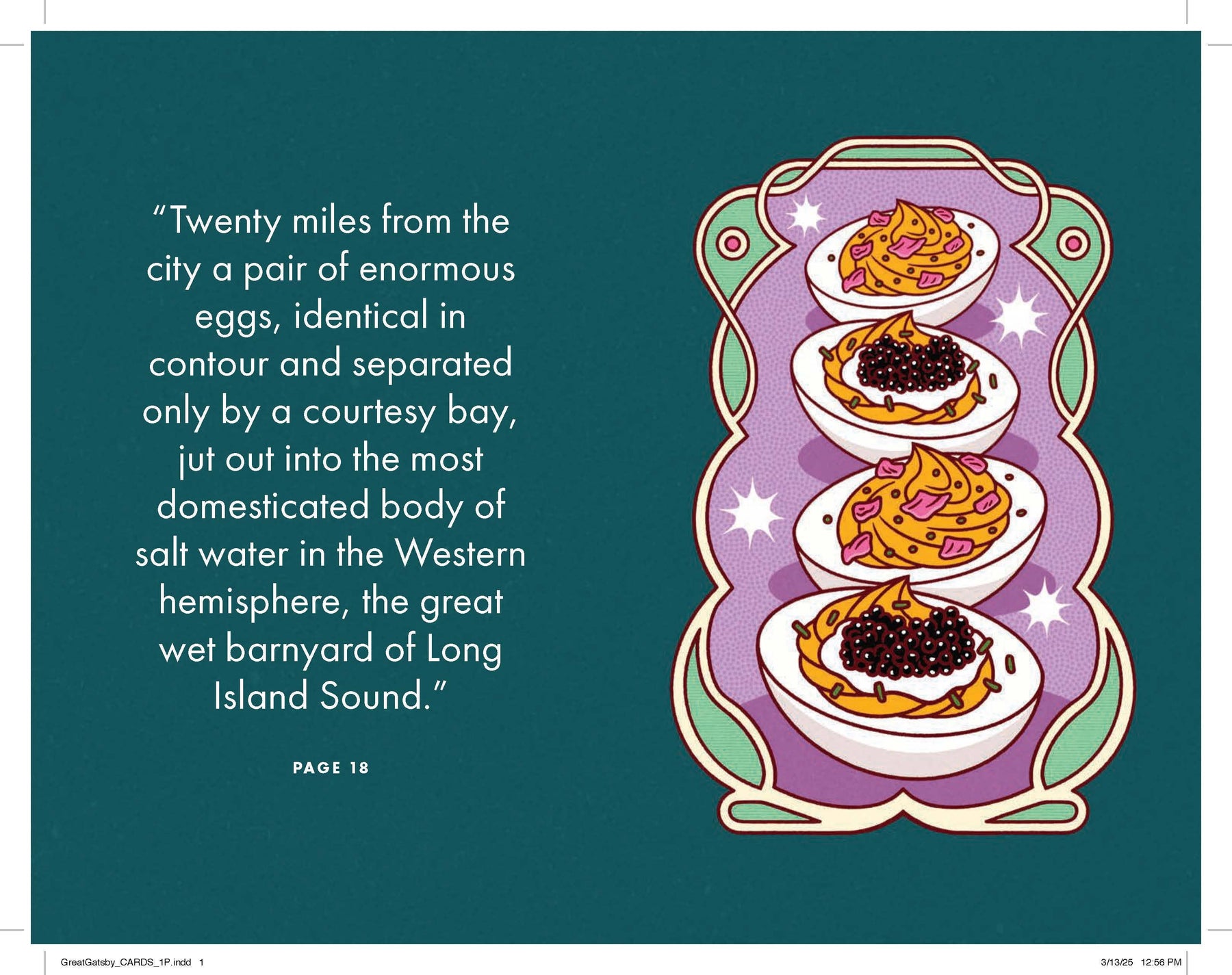 Tucked craftily within the pages of the full-length novel are removable cards with food and drink recipes inspired by the story—from indulgent cocktails to enticing appetizers to languorous sweets—so you can truly experience the decadent world of Gatsby: