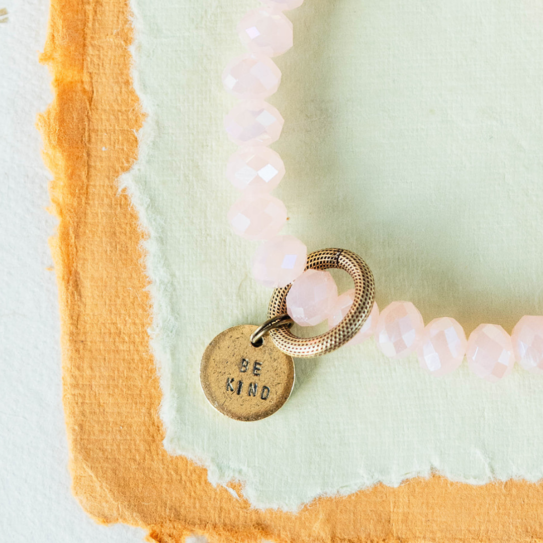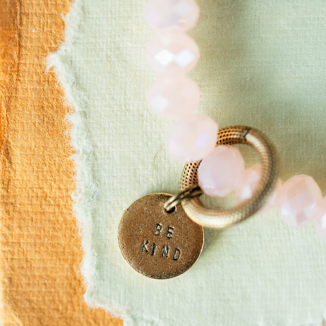 Mantra Bracelet | Stamped Mantra Charm on Crystal Bangle: Be Kind / Gold Plated