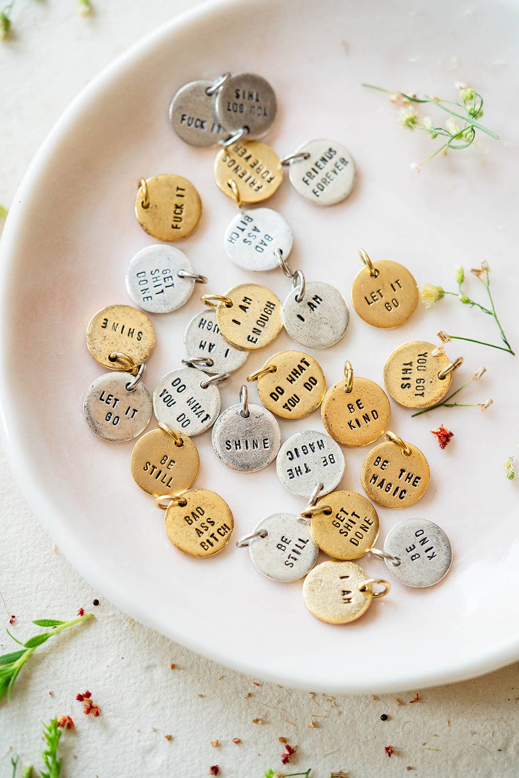 - 1/2" hand stamped Gold Plated or Pewter Mantra Charm
