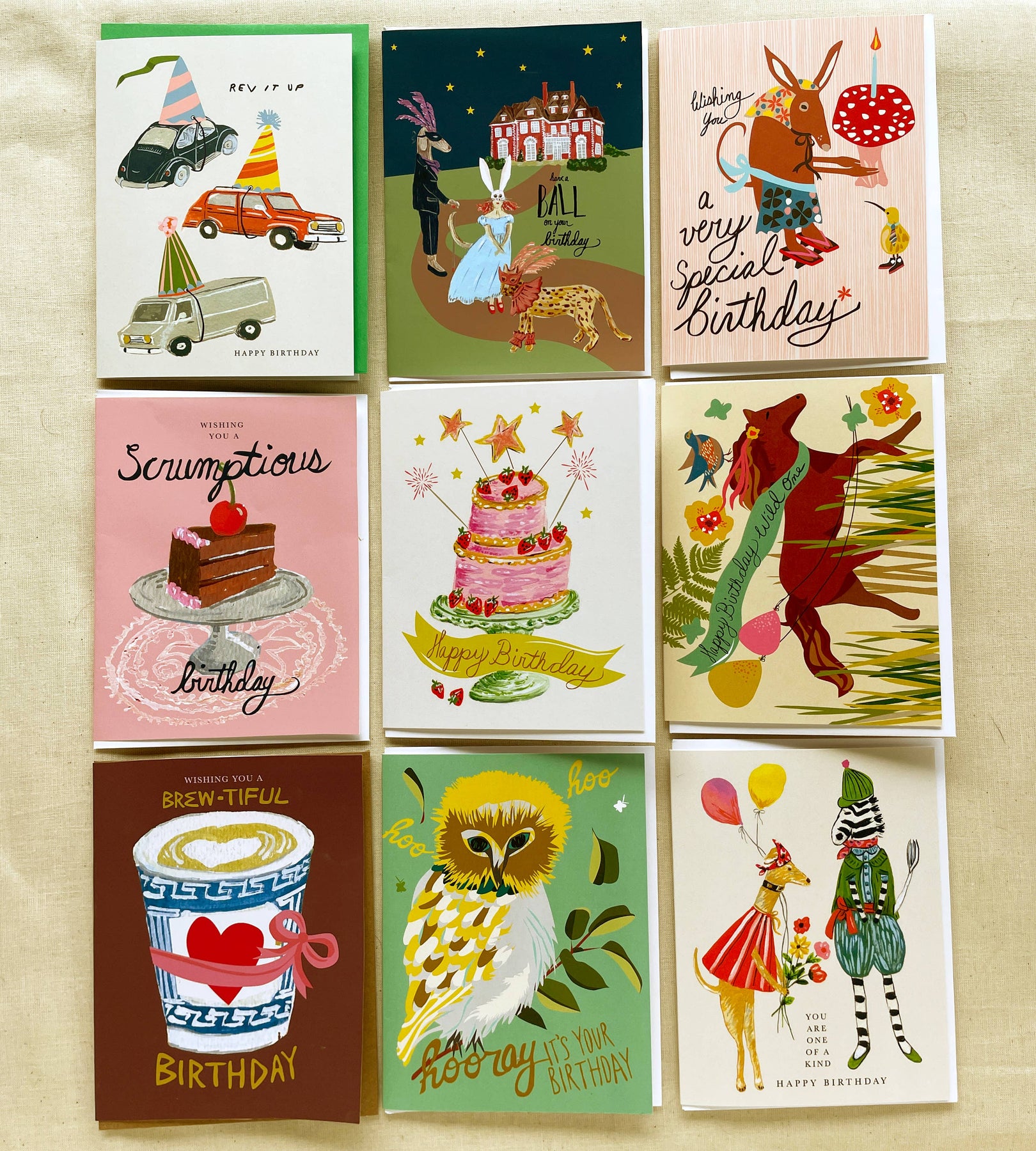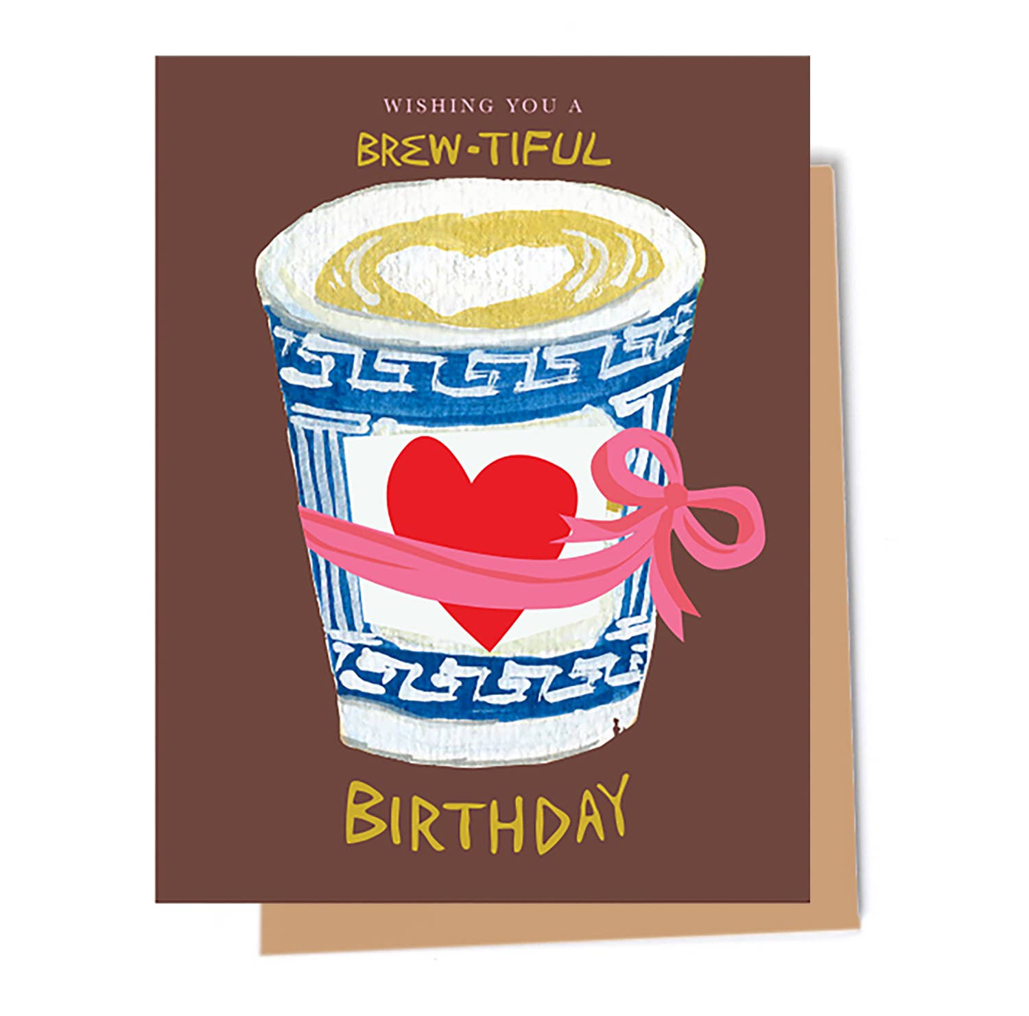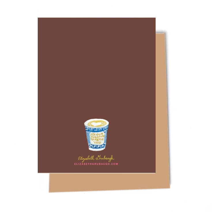Gouache painted deli coffee cup, because nothing beats a basic cup of joe! Hand lettered type. Blank on the inside. Paired with a recycled kraft envelope. Measures 4.25" x 5.5". Individual notes are packaged in a clear sleeve.