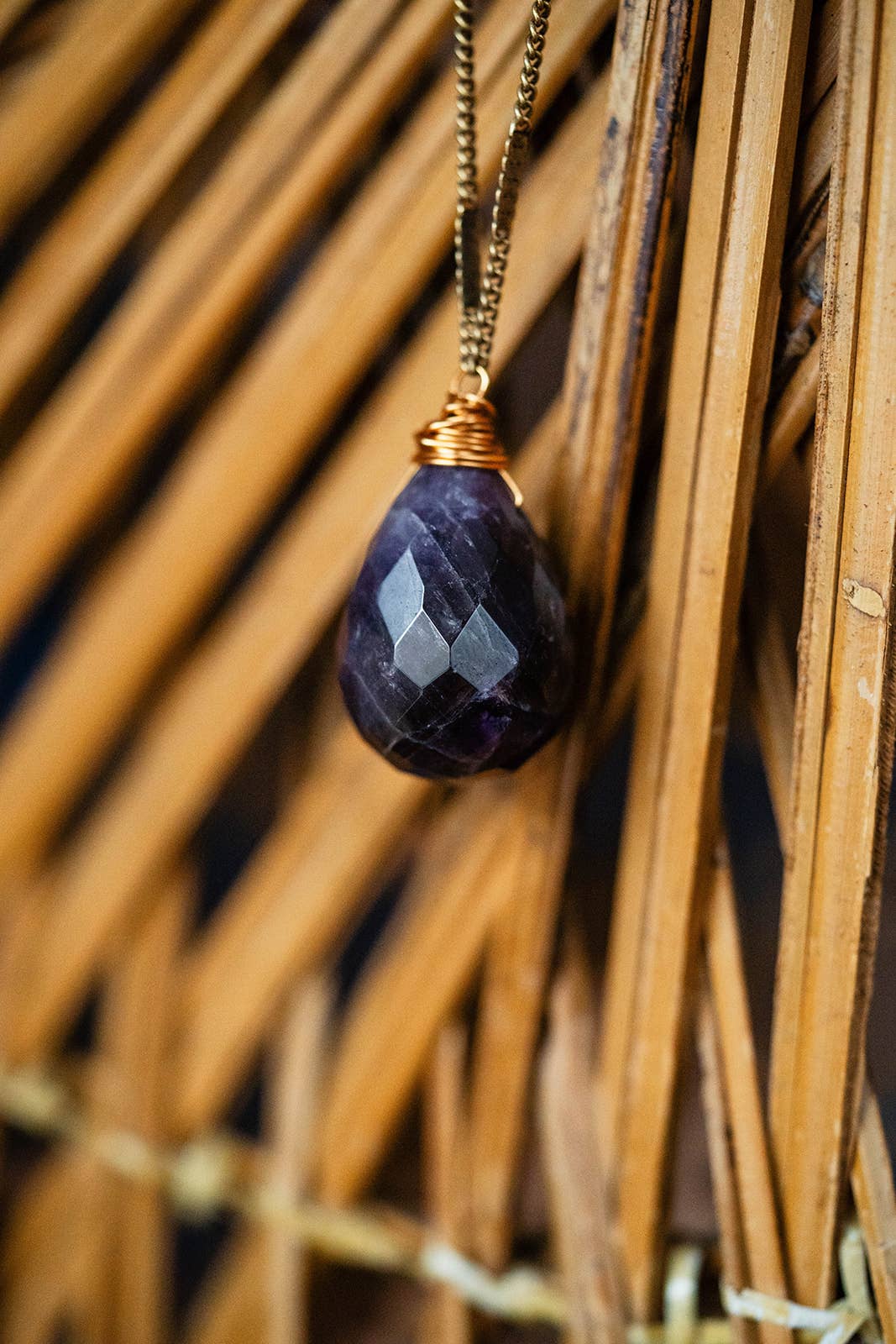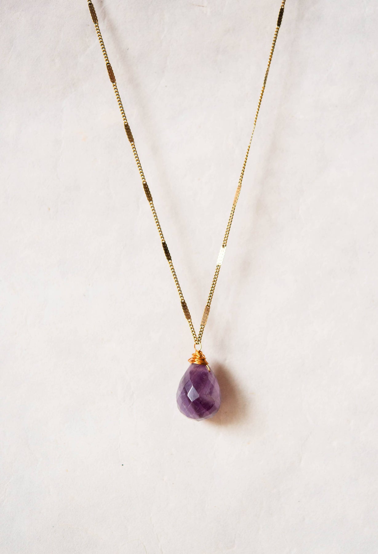 Zara Natural Stone Drop Necklace | Dog Tooth Amethyst: Antique Gold Plated Chain