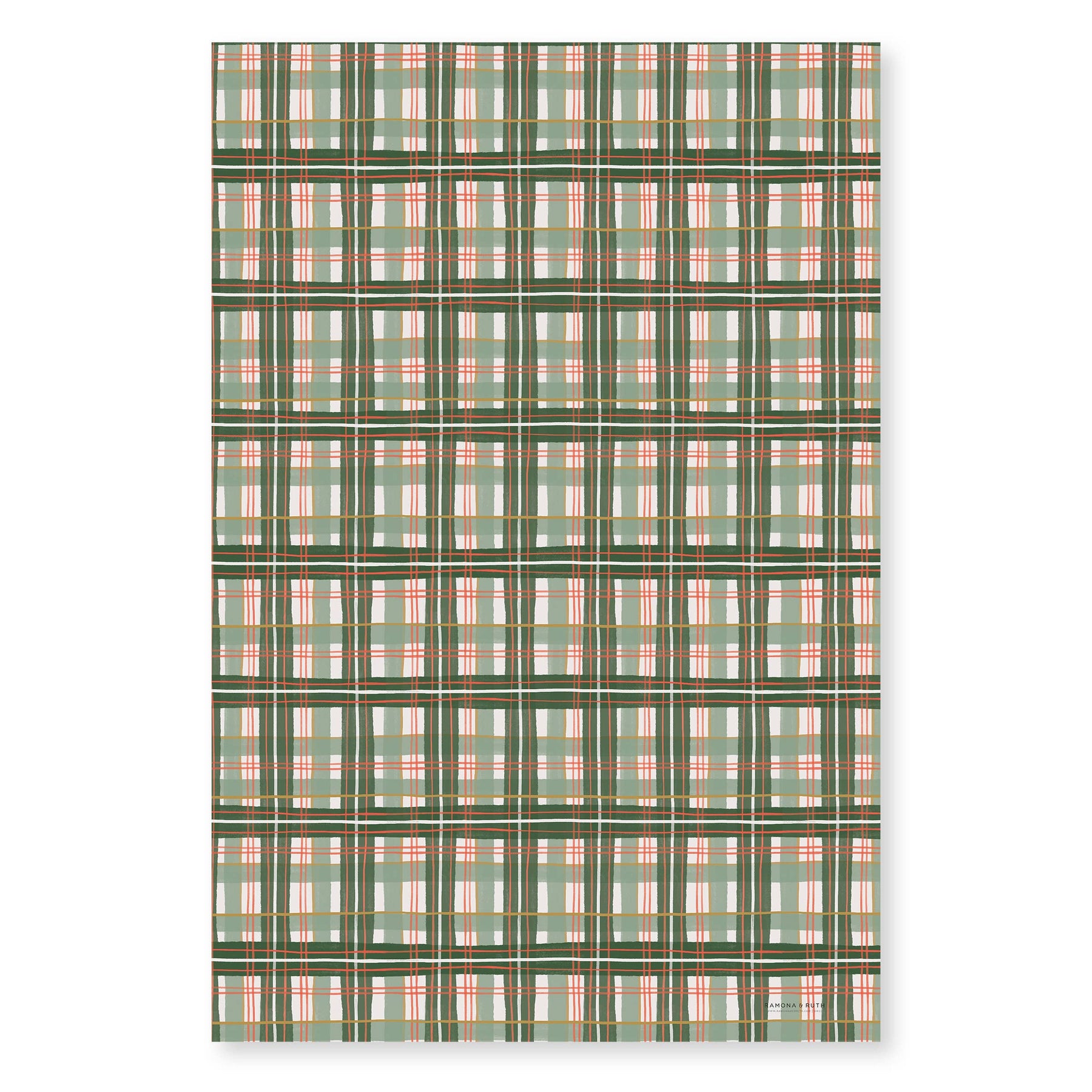 Get into the festive spirit with this classic holiday plaid gift wrap. Featuring a cozy mix of green, red, and cream tones, it’s the perfect wrap for holiday presents to tuck under the tree.