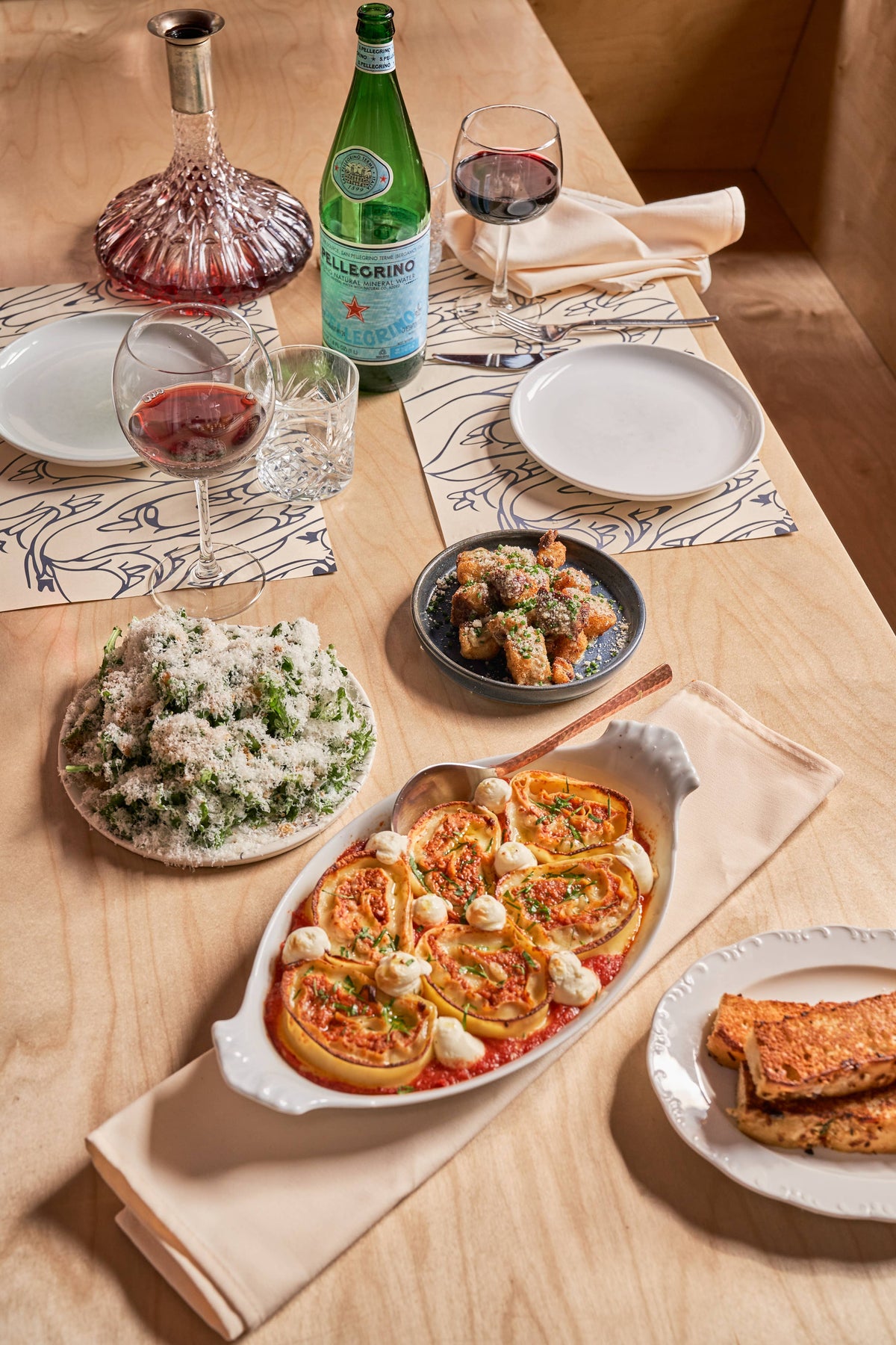 The words “red sauce” alone conjure images of an Italian American table full of antipasti both hot and cold, whisked off to make room for decadent baked pastas topped with molten cheese, all before a procession of chicken parm or pork chops all pizzaiola—and we haven't even gotten to dessert. It’s old-school cooking beloved by many, and imbued with a deep sense of family. In Italian American, Angie Rito and Scott Tacinelli, the chefs of critically acclaimed Don Angie in New York City's West Village, reinvigorate the genre with a modern point of view that proudly straddles the line between Italian and American. They present family classics passed down through generations side by side with creative spins and riffs inspired by influences both old and new. These comforting dishes feel familiar but are far from expected, including their signature pinwheel lasagna, ribs glazed with orange and Campari, shrimp parm meatballs, and a cheesy, bubbling gratin of broccoli rabe and sharp provolone.