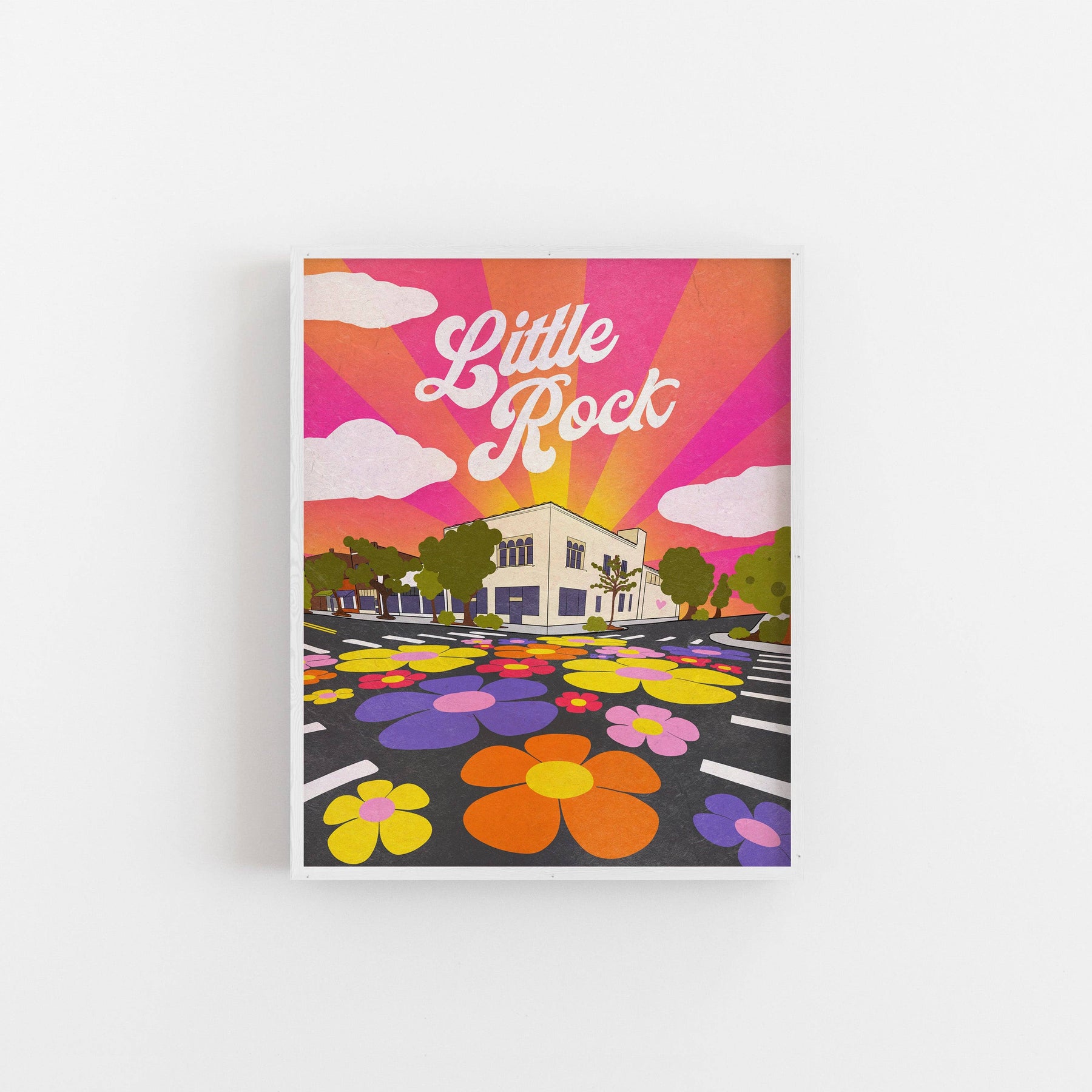 "Little Rock" Materials used are always sourced in America — each art piece is printed on 100% cotton paper stock, hand cut, and signed in our studio. Prints come packaged in clear bags with a firm piece of card chip backing to protect against bends in transit, as well as an info card detailing "about the artist" and the size of the print for framing purposes.