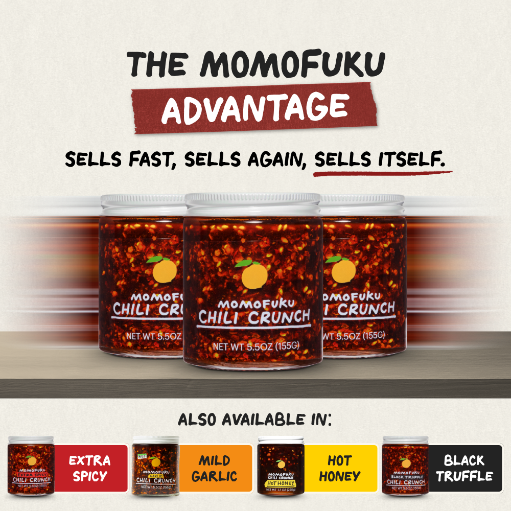 Stock Chef David Chang's Chili Crunch Customers Ask For By Name - Momofuku - and watch it fly off your shelves with lightning-fast speed!