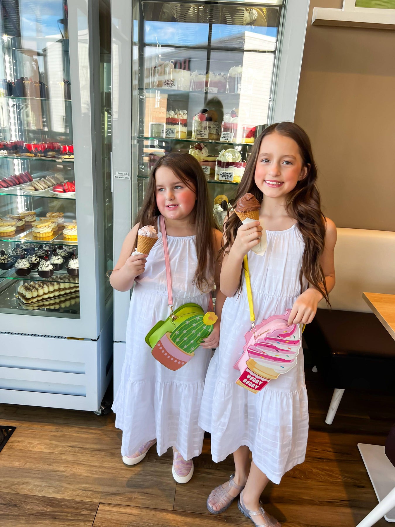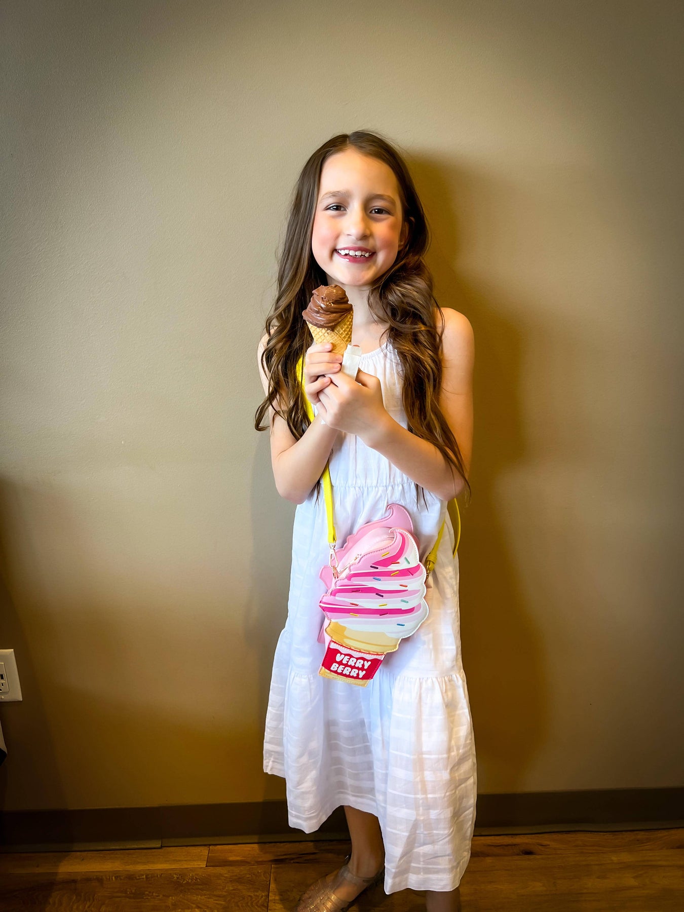 ✨NEW for 2024~ super fun ice cream cone PU leather shaped novelty purse with adjustable straps! Available in two fun flavors: Strawberry & Chocolate. So fun! 💖🤎🍦