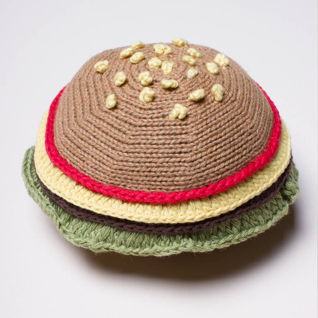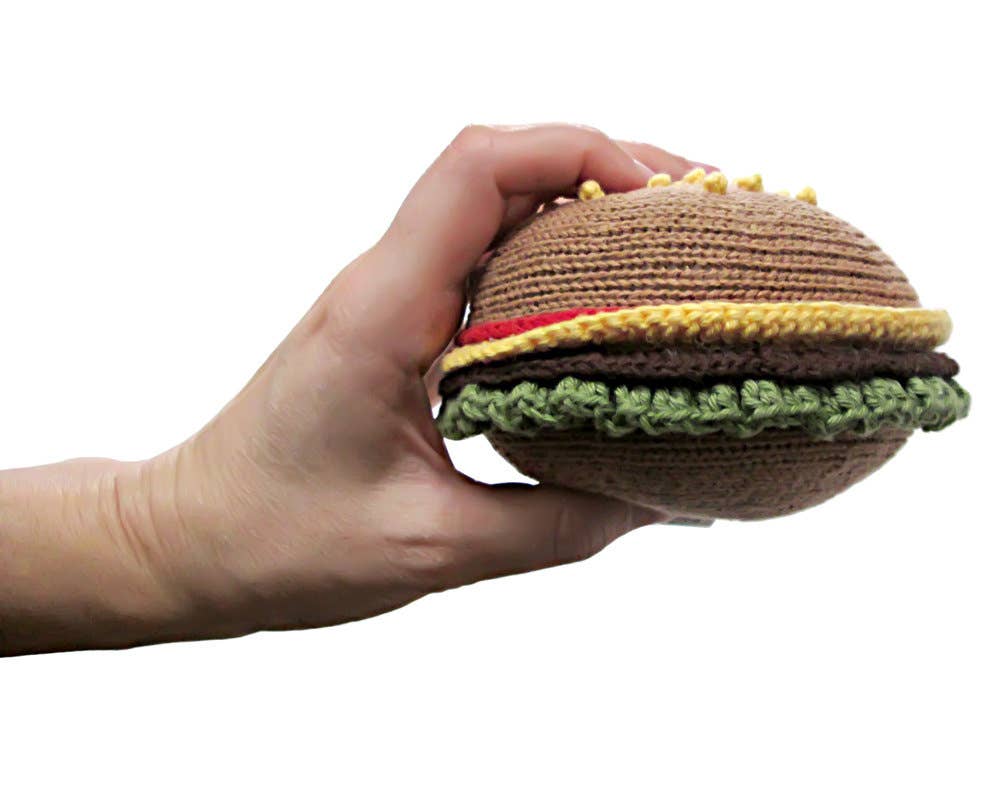 Organic Baby Toy - Hamburger Rattle (Handmade): 3.5" diameter and 2"h